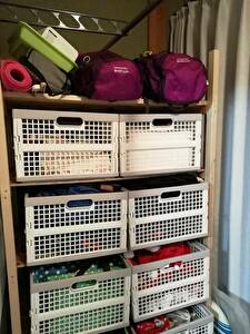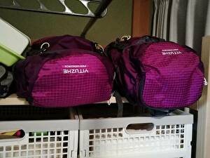 一番上の2つのバッグが緊急時の持ち出し用バッグです。